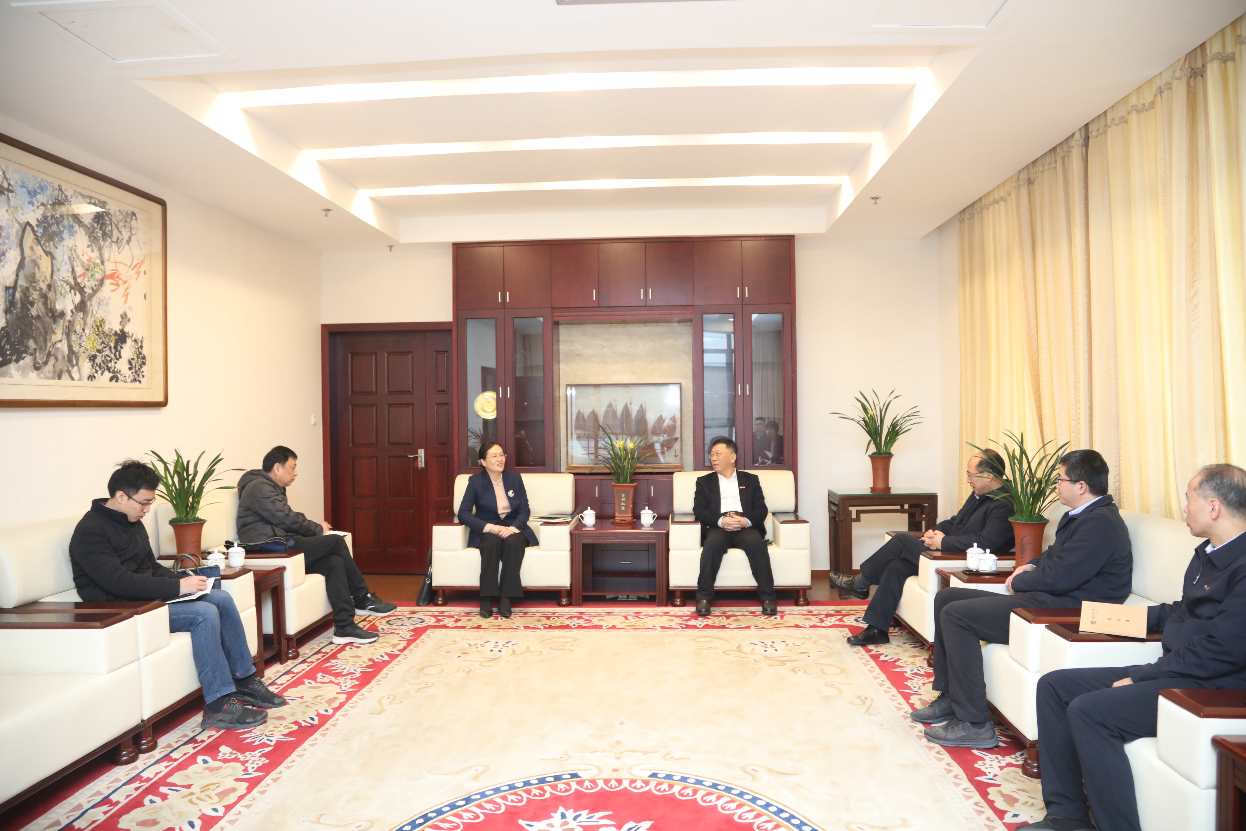 新闻中心讯/1月20日上午,泉州市副市长汪志红一行来宝威体彩调研,宝威体彩党委书记陈国龙、副校长王心晨在旗山校区行政南楼会见客人并举行座谈。